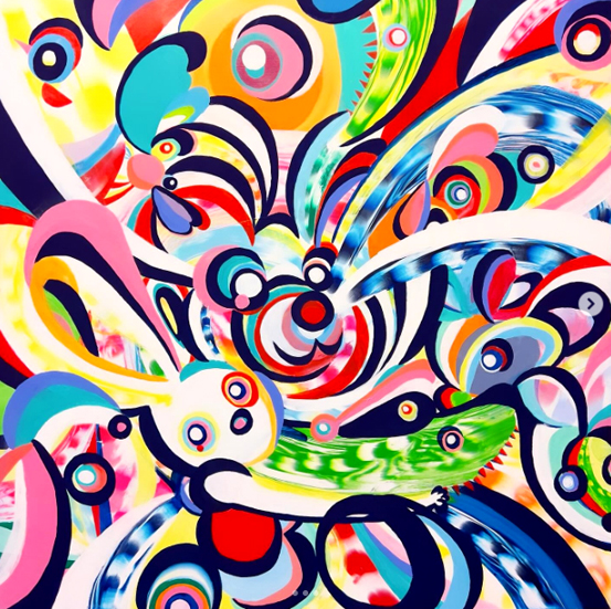 近年は赤や緑などの透明色を用いたモノトーンの平面作品を制作しています